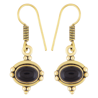 Gorgeous Rawa Work Around Black Onyx Oval Shape Solid Brass Dangle Earrings