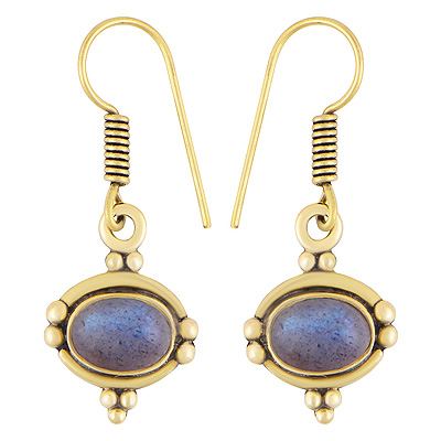 Gorgeous Rawa Work Around Labradorite Oval Shape Solid Brass Dangle Earrings