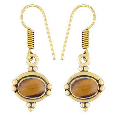 Gorgeous Rawa Work Around Tiger's Eye Oval Shape Solid Brass Dangle Earrings