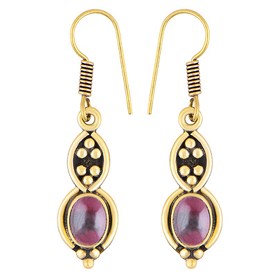 Home | Fashion Earrings | Brass Gemstone Earrings | Stunning Oxidised Rawa Work Around Garnet Oval Shape Solid Brass Dangle Earrings