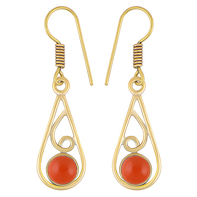 Home | Fashion Earrings | Brass Gemstone Earrings | Beautiful Wire Pattern Around Carnelian Round Shape Solid Brass Dangle Earrings