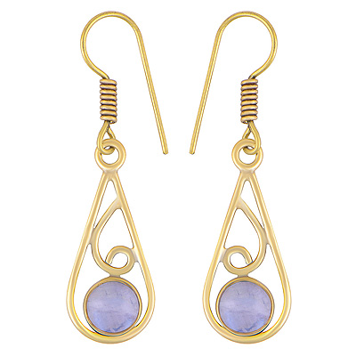 Home | Fashion Earrings | Brass Gemstone Earrings | Beautiful Wire Pattern Around Rainbow Moonstone Round Shape Solid Brass Dangle Earrings