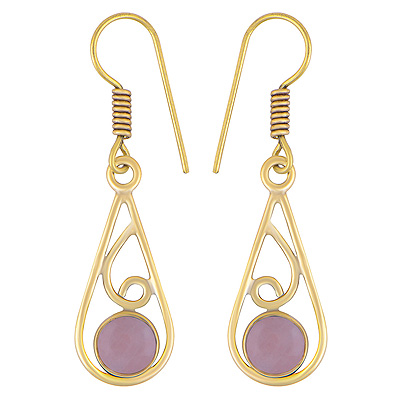 Home | Fashion Earrings | Brass Gemstone Earrings | Beautiful Wire Pattern Around Rose Quartz Round Shape Solid Brass Dangle Earrings