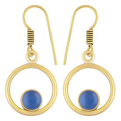Home | Fashion Earrings | Brass Gemstone Earrings | Alluring Circle Around Blue Chalcedony Round Shape Solid Brass Dangle Earrings
