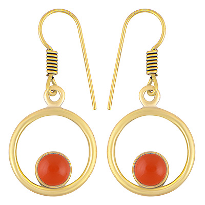 Home | Fashion Earrings | Brass Gemstone Earrings | Alluring Circle Around Carnelian Round Shape Solid Brass Dangle Earrings