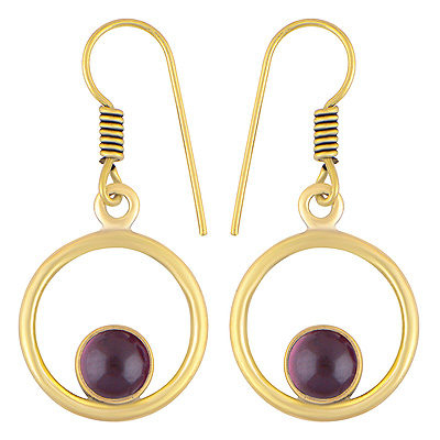Home | Fashion Earrings | Brass Gemstone Earrings | Alluring Circle Around Garnet Round Shape Solid Brass Dangle Earrings