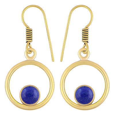Home | Fashion Earrings | Brass Gemstone Earrings | Alluring Circle Around Lapis Round Shape Solid Brass Dangle Earrings