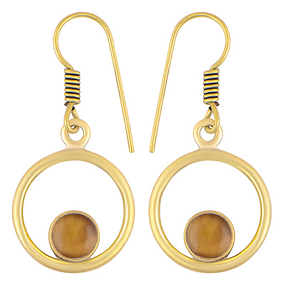 Home | Fashion Earrings | Brass Gemstone Earrings | Alluring Circle Around Tiger's Eye Round Shape Solid Brass Dangle Earrings