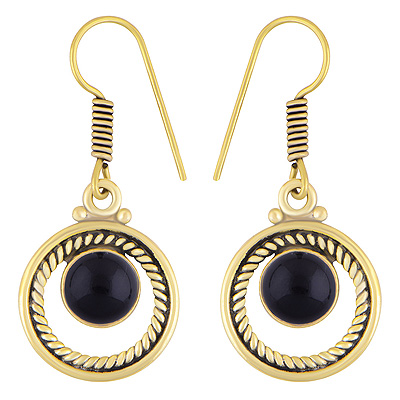 Home | Fashion Earrings | Brass Gemstone Earrings | Gorgeous Twisted Wire Work Around Black Onyx Round Shape Solid Brass Dangle Earrings