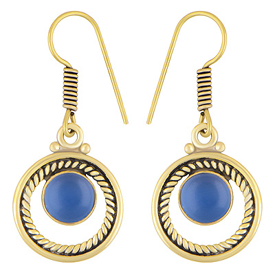Home | Fashion Earrings | Brass Gemstone Earrings | Gorgeous Twisted Wire Work Around Blue Chalcedony Round Shape Solid Brass Dangle Earrings