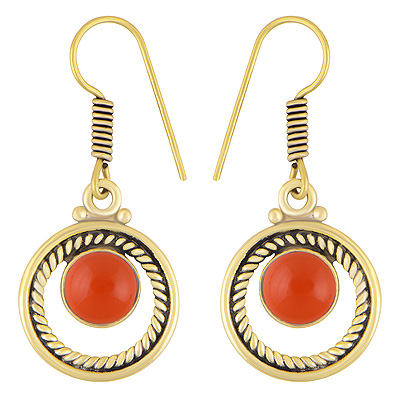 Home | Fashion Earrings | Brass Gemstone Earrings | Gorgeous Twisted Wire Work Around Carnelian Round Shape Solid Brass Dangle Earrings