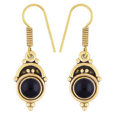 Home | Fashion Earrings | Brass Gemstone Earrings | Alluring Oxidised Rawa Work Around Black Onyx Round Shape Solid Brass Dangle Earrings