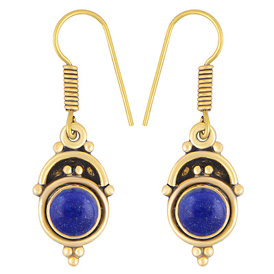 Home | Fashion Earrings | Brass Gemstone Earrings | Alluring Oxidised Rawa Work Around Lapis Round Shape Solid Brass Dangle Earrings