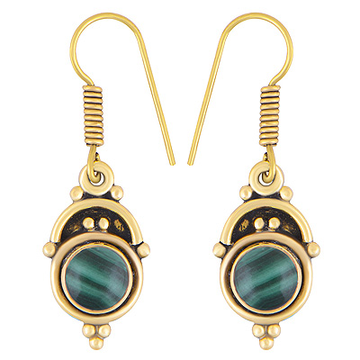 Home | Fashion Earrings | Brass Gemstone Earrings | Alluring Oxidised Rawa Work Around Malachite Round Shape Solid Brass Dangle Earrings