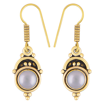 Home | Fashion Earrings | Brass Gemstone Earrings | Alluring Oxidised Rawa Work Around Pearl Round Shape Solid Brass Dangle Earrings