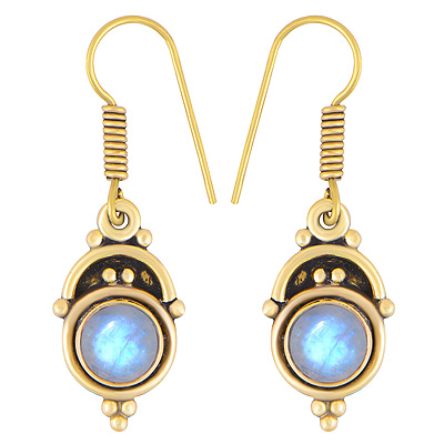 Home | Fashion Earrings | Brass Gemstone Earrings | Alluring Oxidised Rawa Work Around Rainbow Moonstone Round Shape Solid Brass Dangle Earrings