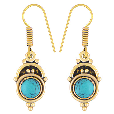 Home | Fashion Earrings | Brass Gemstone Earrings | Alluring Oxidised Rawa Work Around Turquoise Round Shape Solid Brass Dangle Earrings