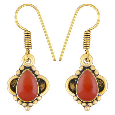 Home | Fashion Earrings | Brass Gemstone Earrings | Stunning Handcrafted Rawa Work Around Carnelian Pear Shape Solid Brass Dangle Earrings