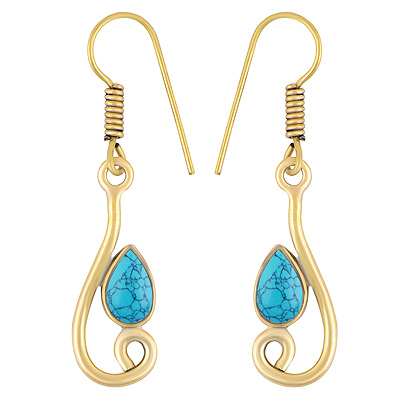 Home | Fashion Earrings | Brass Gemstone Earrings | Beautiful Handcrafted Work Around Turquoise Pear Shape Solid Brass Dangle Earrings