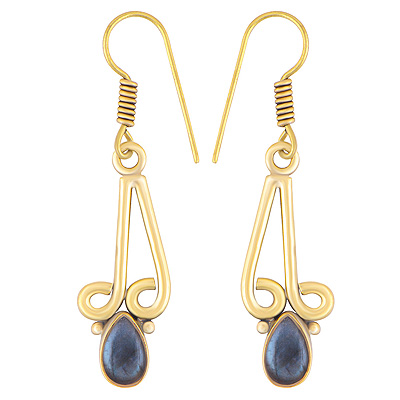 Home | Fashion Earrings | Brass Gemstone Earrings | Gorgeous Wire Work Around Labradorite Pear Shape Solid Brass Dangle Earrings