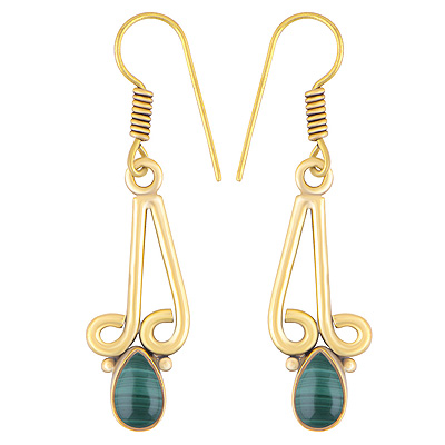 Home | Fashion Earrings | Brass Gemstone Earrings | Gorgeous Wire Work Around Malachite Pear Shape Solid Brass Dangle Earrings