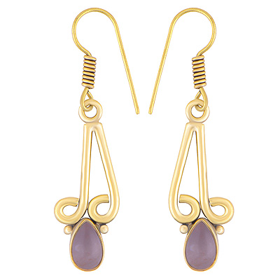 Home | Fashion Earrings | Brass Gemstone Earrings | Gorgeous Wire Work Around Rose Quartz Pear Shape Solid Brass Dangle Earrings