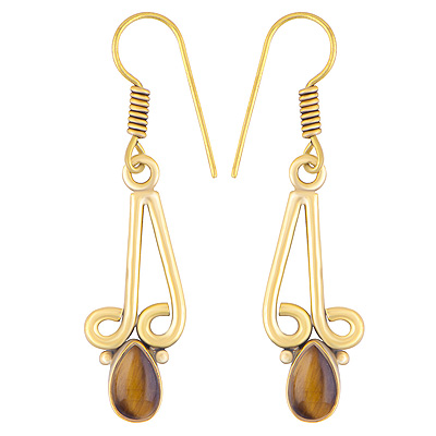 Home | Fashion Earrings | Brass Gemstone Earrings | Gorgeous Wire Work Around Tiger's Eye Pear Shape Solid Brass Dangle Earrings