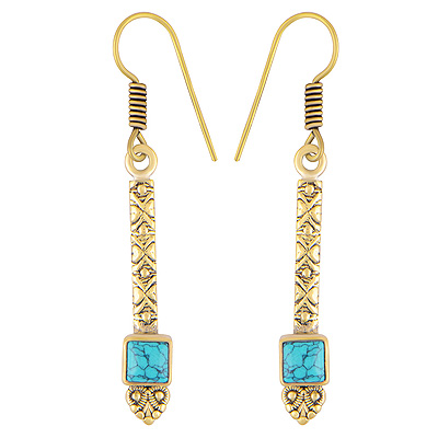 Home | Fashion Earrings | Brass Gemstone Earrings | Alluring Vintage work Around Turquoise Square Shape Solid Brass Dangle Earrings