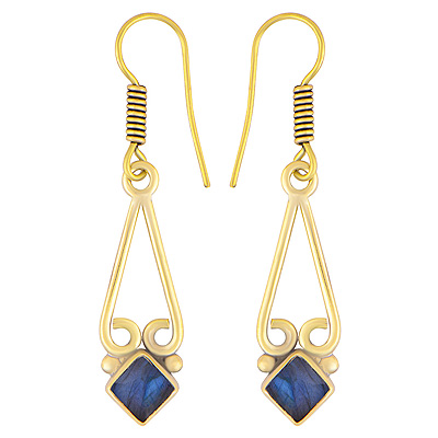 Home | Fashion Earrings | Brass Gemstone Earrings | Beautiful Wire Work Around Labradorite Square Shape Solid Brass Dangle Earrings