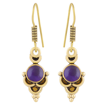 Home | Fashion Earrings | Brass Gemstone Earrings | Alluring Oxidised Work Around Amethyst Round Shape Solid Brass Dangle Earrings