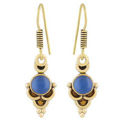 Home | Fashion Earrings | Brass Gemstone Earrings | Alluring Oxidised Work Around Blue Chalcedony Round Shape Solid Brass Dangle Earrings