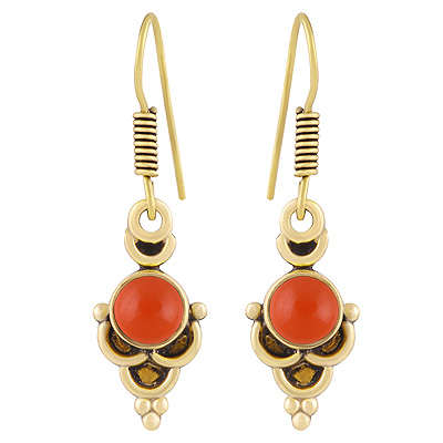 Home | Fashion Earrings | Brass Gemstone Earrings | Alluring Oxidised Work Around Carnelian Round Shape Solid Brass Dangle Earrings