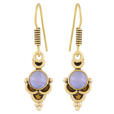 Home | Fashion Earrings | Brass Gemstone Earrings | Alluring Oxidised Work Around Rainbow Moonstone Round Shape Solid Brass Dangle Earrings
