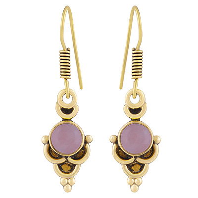 Home | Fashion Earrings | Brass Gemstone Earrings | Alluring Oxidised Work Around Rose Quartz Round Shape Solid Brass Dangle Earrings