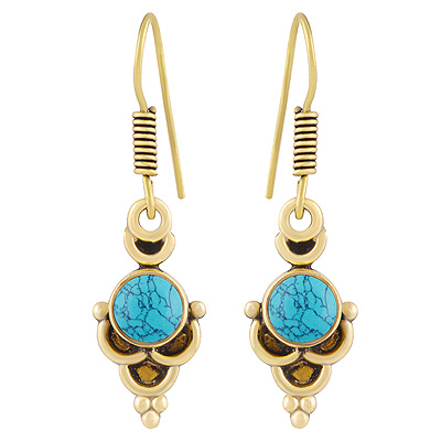 Home | Fashion Earrings | Brass Gemstone Earrings | Alluring Oxidised Work Around Turquoise Round Shape Solid Brass Dangle Earrings