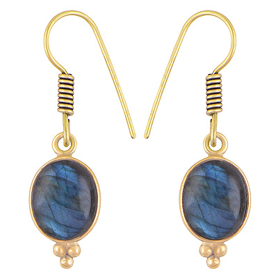 Home | Fashion Earrings | Brass Gemstone Earrings | Classic Bezel Frame Rawa Work Around Labradorite Oval Shape Solid Brass Dangle Earrings