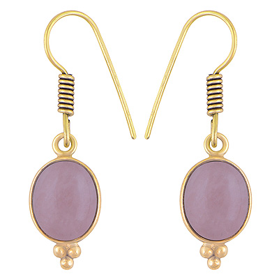 Home | Fashion Earrings | Brass Gemstone Earrings | Classic Bezel Frame Rawa Work Around Rose Quartz Oval Shape Solid Brass Dangle Earrings