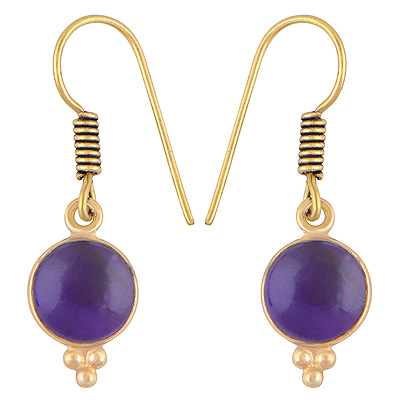 Home | Fashion Earrings | Brass Gemstone Earrings | Gorgeous Minimal Rawa Work Around Bezel Amethyst Round Shape Solid Brass Dangle Earrings