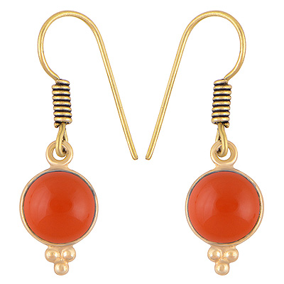 Home | Fashion Earrings | Brass Gemstone Earrings | Gorgeous Minimal Rawa Work Around Bezel Carnelian Round Shape Solid Brass Dangle Earrings