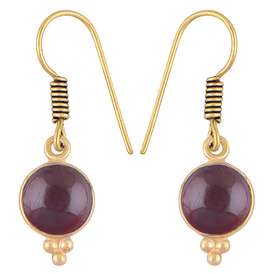 Home | Fashion Earrings | Brass Gemstone Earrings | Gorgeous Minimal Rawa Work Around Bezel Garnet Round Shape Solid Brass Dangle Earrings