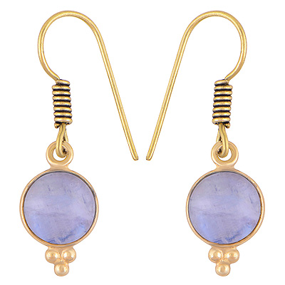 Home | Fashion Earrings | Brass Gemstone Earrings | Gorgeous Minimal Rawa Work Around Bezel Rainbow Moonstone Round Shape Solid Brass Dangle Earrings