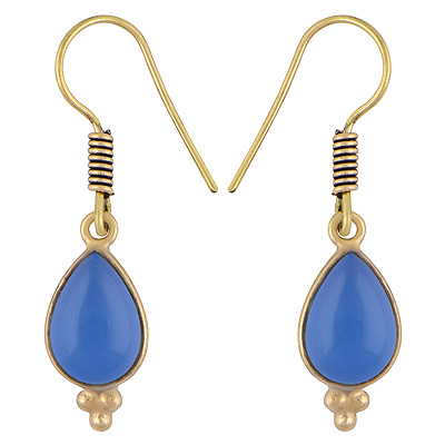 Home | Fashion Earrings | Brass Gemstone Earrings | Beautifully Handmade Bezel Rawa Work At Bottom Blue Chalcedony Pear Shape Solid Brass Dangle Earrings
