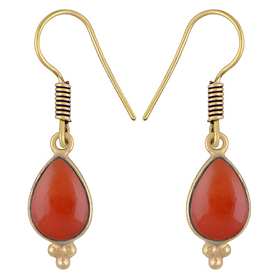 Home | Fashion Earrings | Brass Gemstone Earrings | Beautifully Handmade Bezel Rawa Work At Bottom Carnelian Pear Shape Solid Brass Dangle Earrings