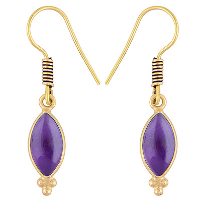 Home | Fashion Earrings | Brass Gemstone Earrings | Stunning Handcrafted Bezel Rawa Work Amethyst Marquise Shape Solid Brass Dangle Earrings