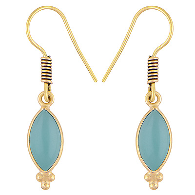 Home | Fashion Earrings | Brass Gemstone Earrings | Stunning Handcrafted Bezel Rawa Work Aqua Chalcedony Marquise Shape Solid Brass Dangle Earrings