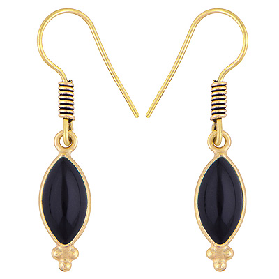 Home | Fashion Earrings | Brass Gemstone Earrings | Stunning Handcrafted Bezel Rawa Work Black Onyx Marquise Shape Solid Brass Dangle Earrings