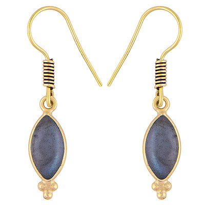 Home | Fashion Earrings | Brass Gemstone Earrings | Stunning Handcrafted Bezel Rawa Work Labradorite Marquise Shape Solid Brass Dangle Earrings