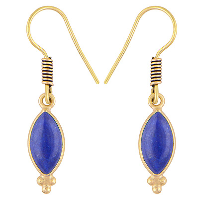 Home | Fashion Earrings | Brass Gemstone Earrings | Stunning Handcrafted Bezel Rawa Work Lapis Marquise Shape Solid Brass Dangle Earrings