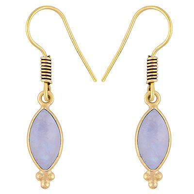 Home | Fashion Earrings | Brass Gemstone Earrings | Stunning Handcrafted Bezel Rawa Work Rainbow Moonstone Marquise Shape Solid Brass Dangle Earrings