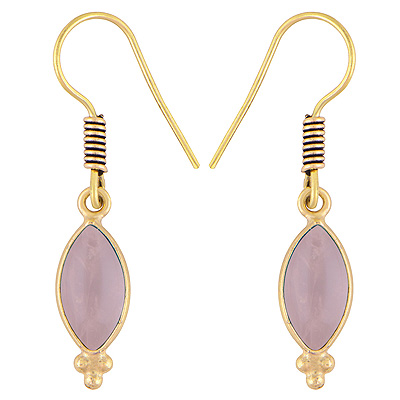 Home | Fashion Earrings | Brass Gemstone Earrings | Stunning Handcrafted Bezel Rawa Work Rose Quartz Marquise Shape Solid Brass Dangle Earrings